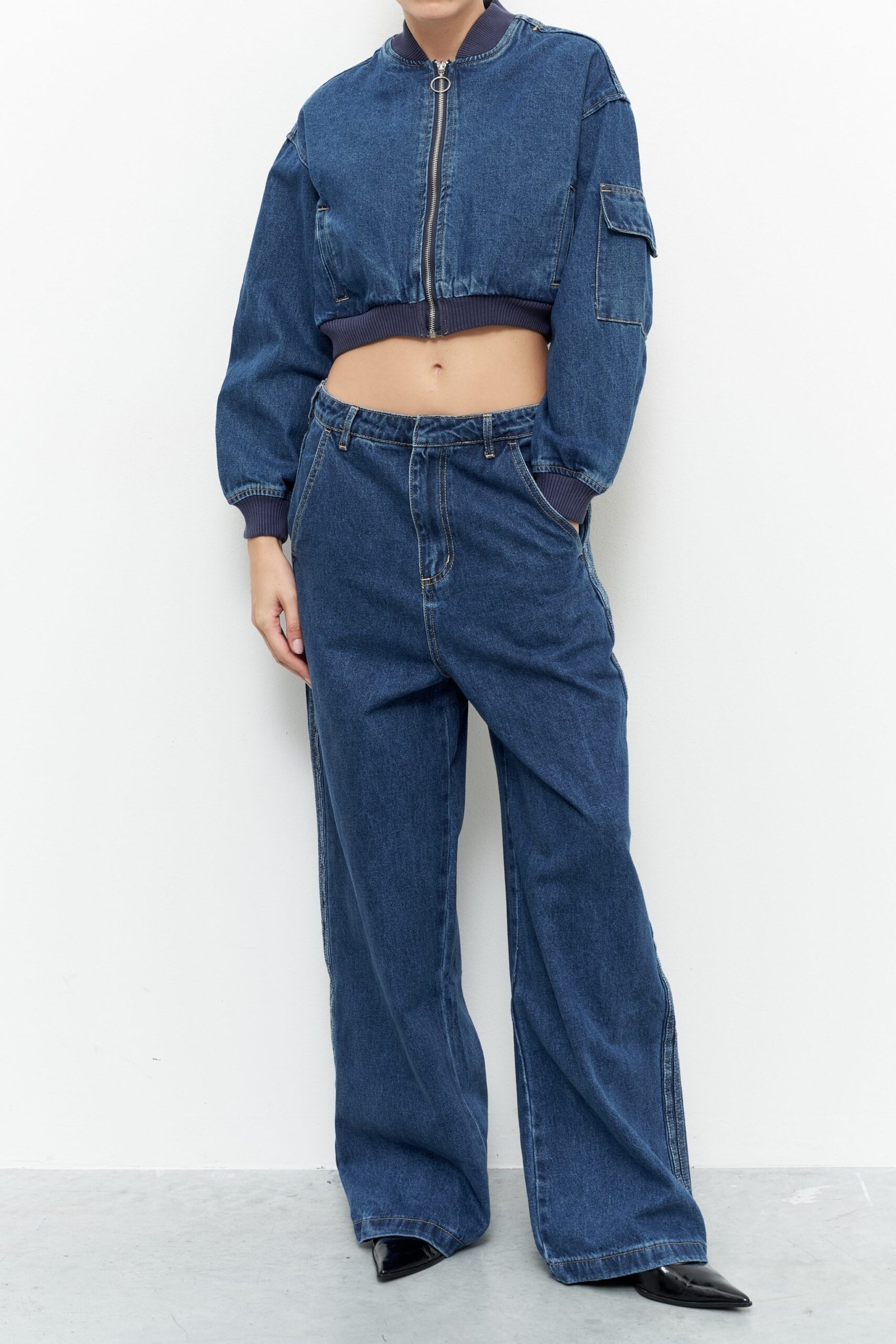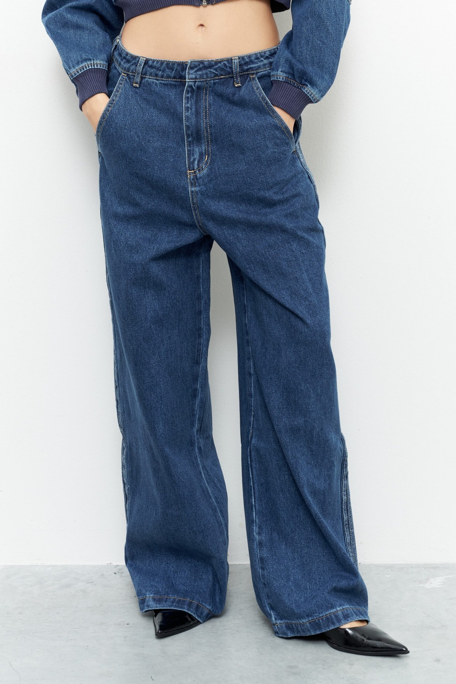 Αυτό το ψηλόμεσο παντελόνι τύπου baggy κατασκευάζεται από βαμβακερό μείγμα, προσφέροντας άνεση και ανθεκτικότητα. Η φαρδιά γραμμή του το καθιστά ιδανικό για καθημερινές casual εμφανίσεις. Διαθέτει πλαϊνές και πίσω τσέπες, προσφέροντας πρακτικότητα και χώρο για μικροαντικείμενα.