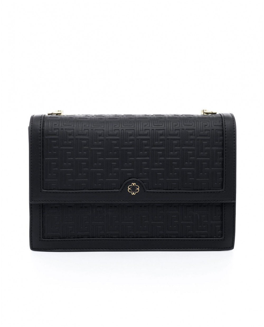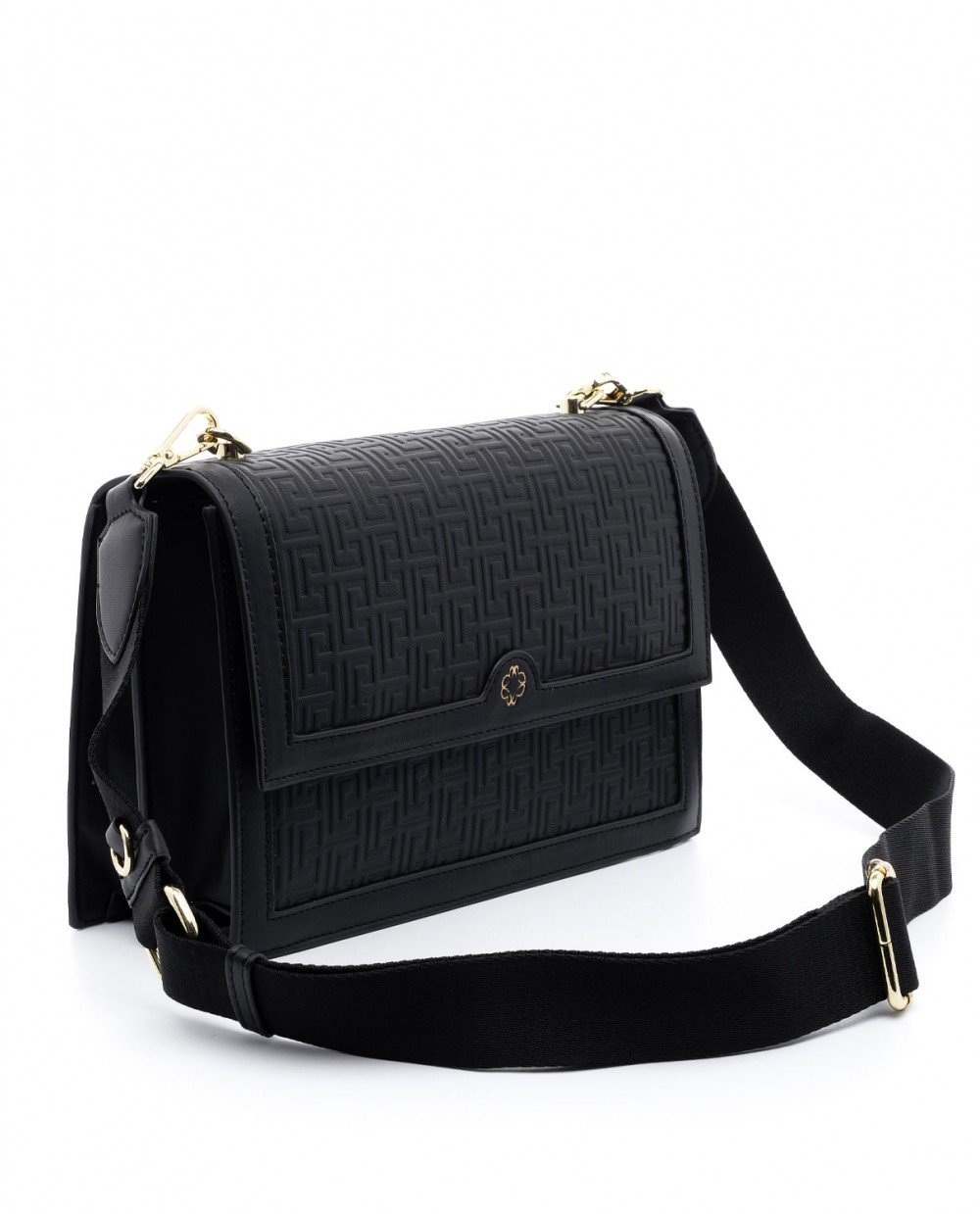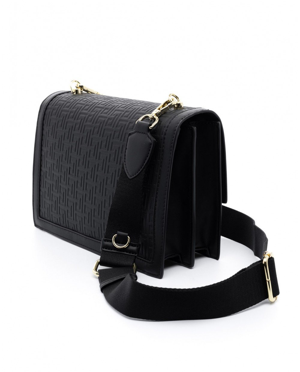 Τσάντα χιαστί μαύρη με ανάγλυφο μαίανδρο.