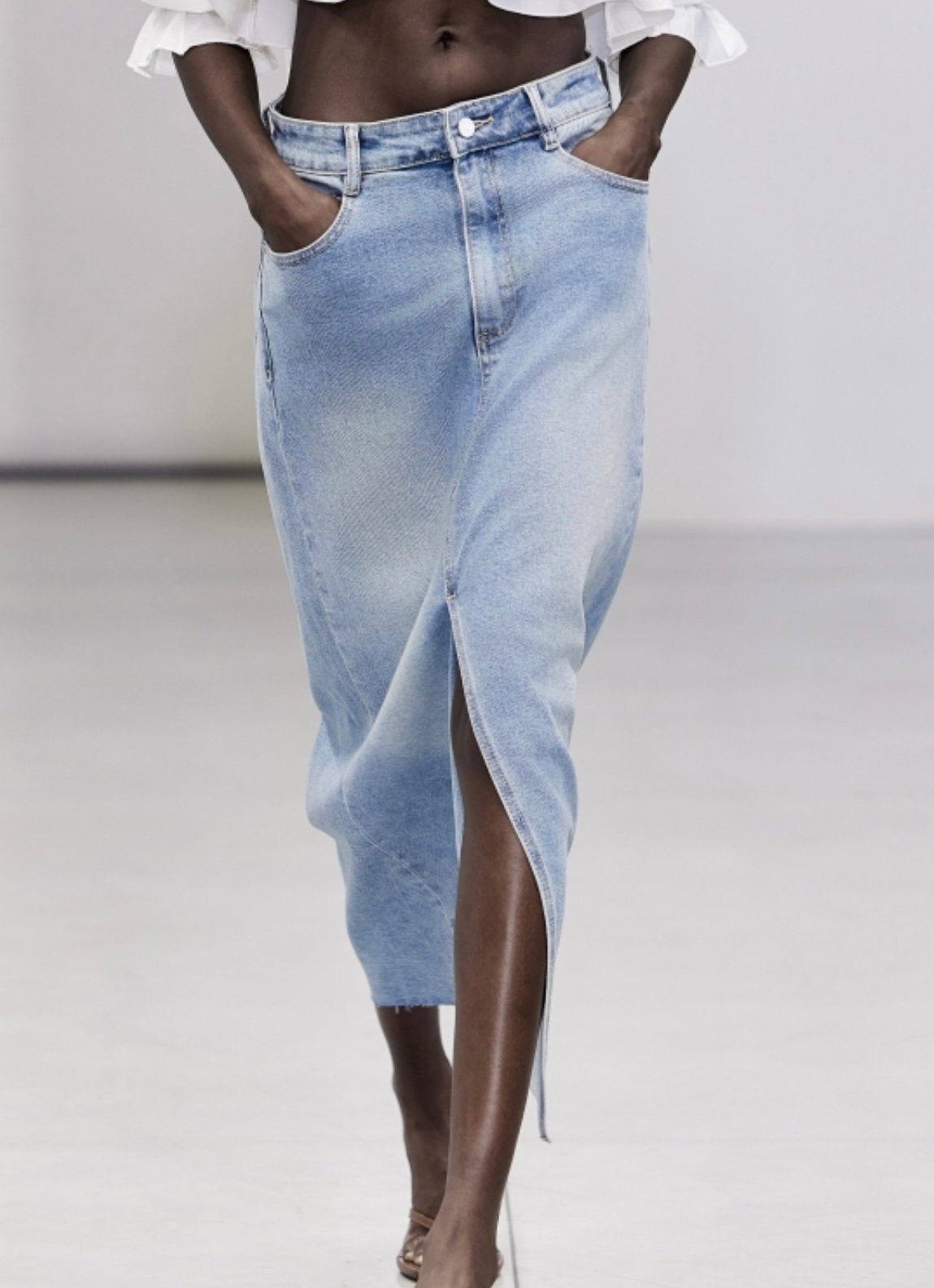 Ψηλόμεσο τζιν παντελόνι σε ανοιχτή γαλάζια απόχρωση, με φαρδιά γραμμή. Ιδανικό για casual καθημερινές εμφανίσεις.